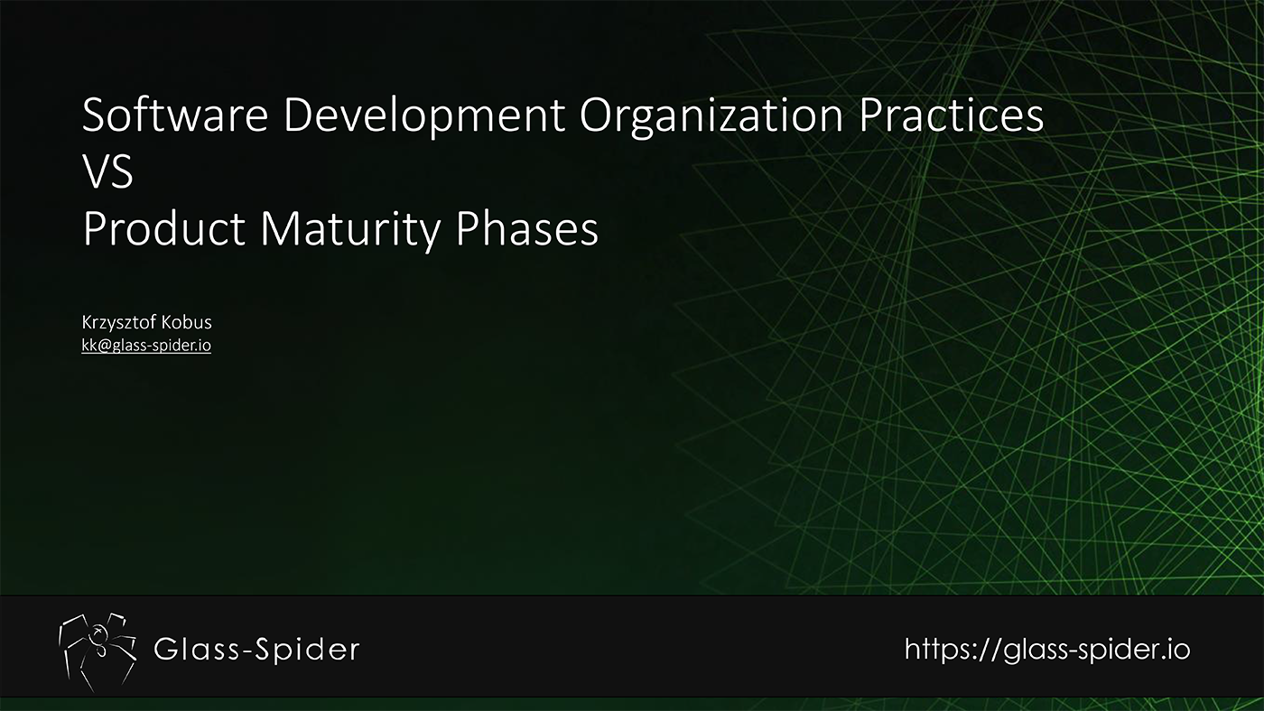 Tactics and strategies of software development process organization remarkably depend on maturity of the product and maturity of related business being developed. Several key factors not limited to achieved product-market fit, funding stage, available talent and financial resources affect the organizational practices. This presentation discusses variety of strategies like test driven development, refactoring, code reviews, pull requests, scrum, need of documentation, pair programming, frequency of releases, etc. and how to in pragmatic and agile way incorporate them into software development process on different stages of product maturity. This presentation has been a part of mentoring engagement for Flat6Labs startup accelerator in Bahrain on 9th June 2020.